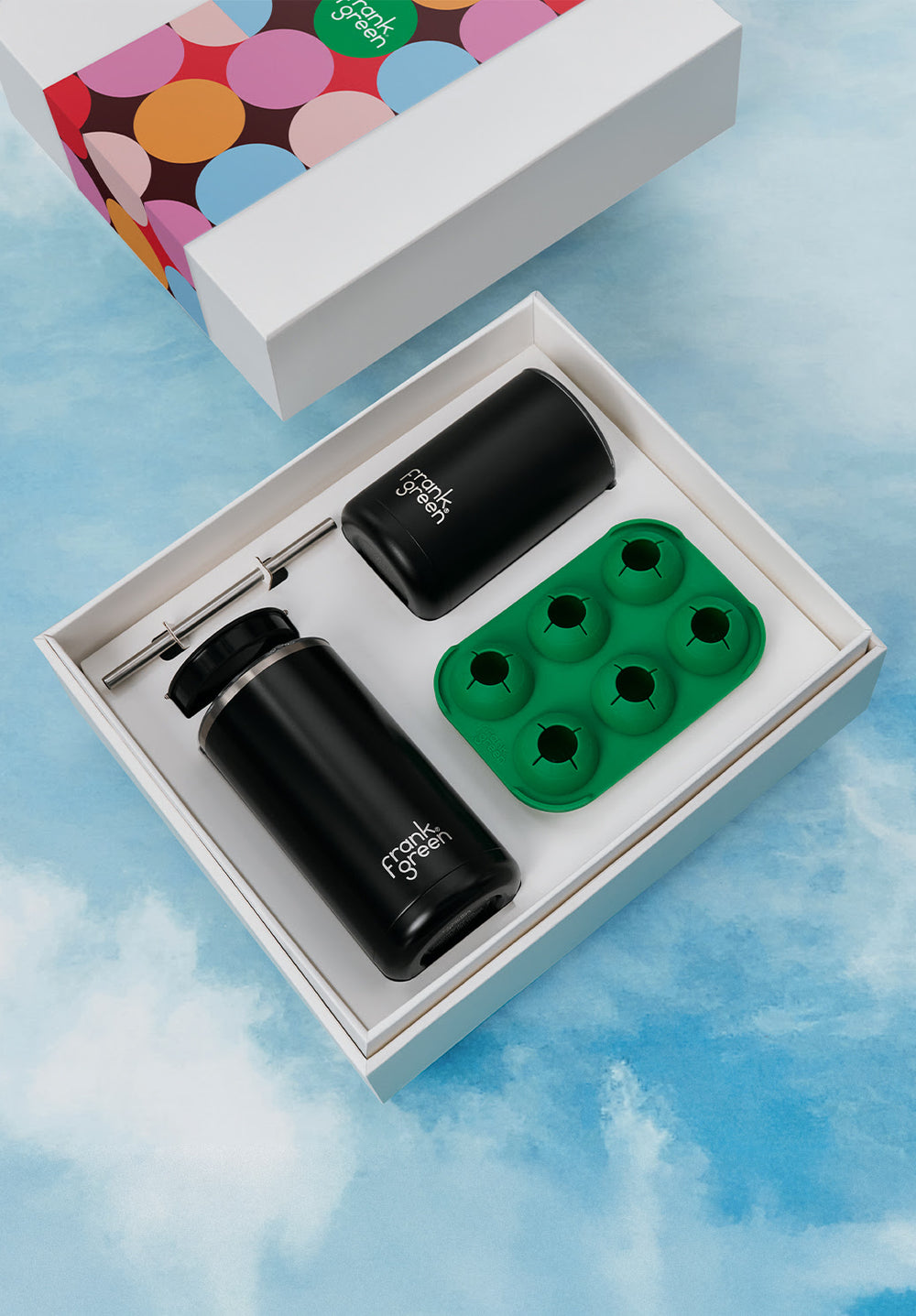 • Fill and Chill Ice Tray creates six ice spheres embossed with frank green's logo