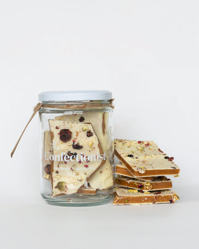 Handcrafted with creamy white chocolate, crushed pistachios, and bursts of freeze-dried summer berries. Sweet, nutty, and perfectly balanced.